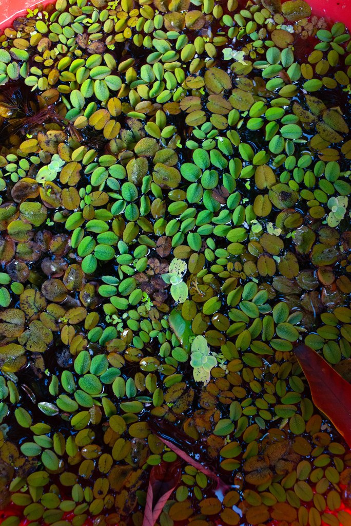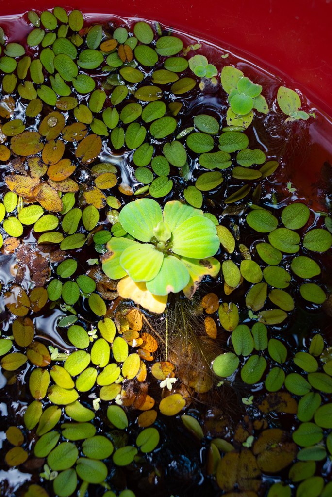During the clean-up, I found a tub full of newly propagated water plants. Pistia (water lettuce) and salvinia, to be precise. These are usually unwanted plants because they’re invasive and notorious for blocking the water systems.