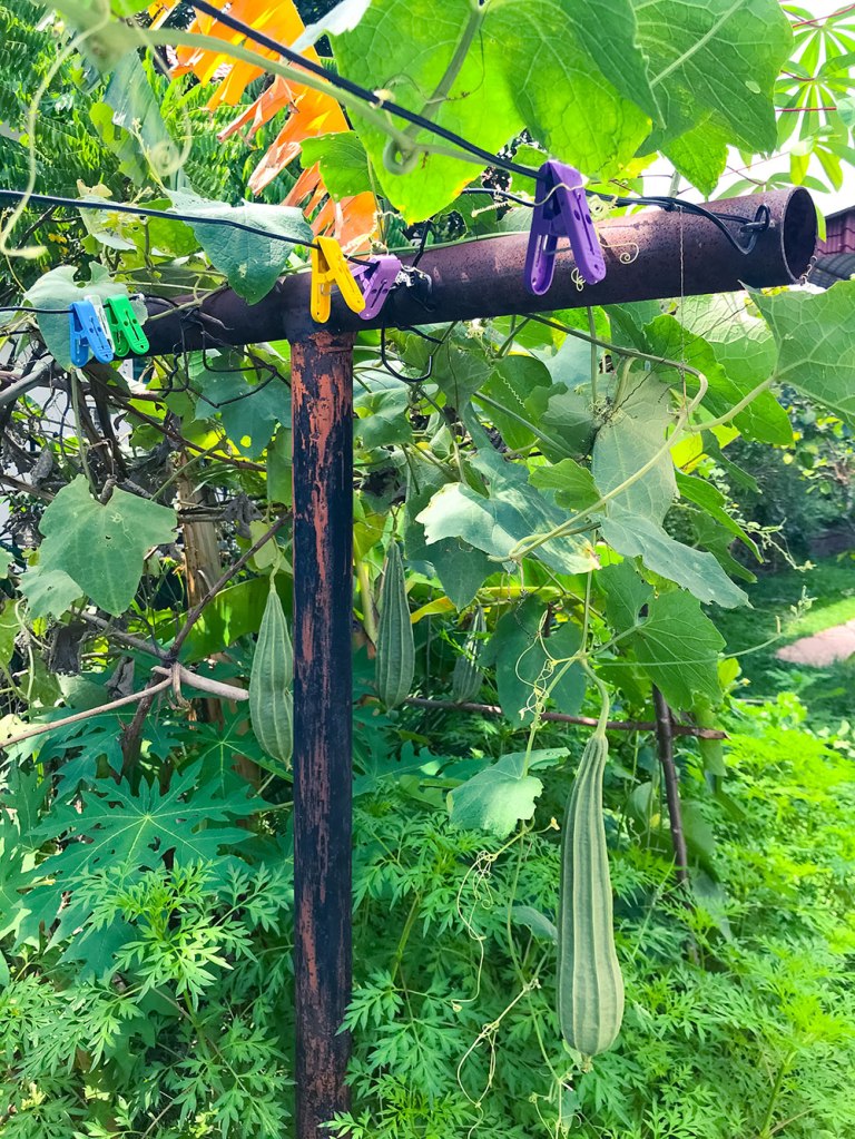 “The luffa invaded the backyard and the bananas sprouted fruits euphorically. My mother found the tiny wilderness rather charming.”